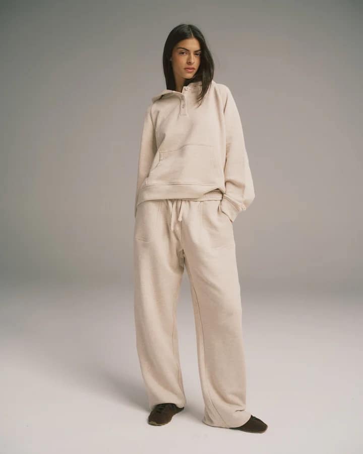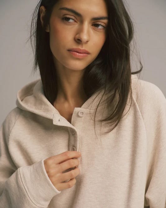 The laid-back essential we all need in our wardrobe. The Loopback Henley Hoodie features a roomy pouch pocket, button front detail and a branded tab. Cut from 100% Organic Cotton loop-back fabric. Style yours with the matching sweatpants.
